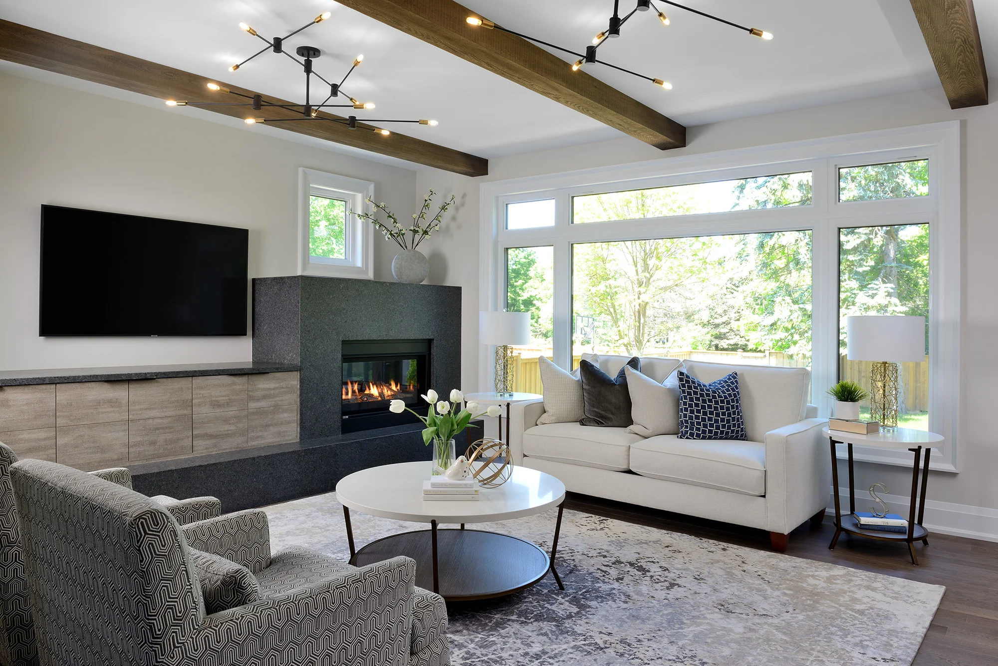 A custom made 80" console was made to accent the space as well as add a surface for entertaining.